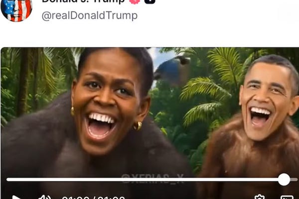 MAGA Outraged after Trump Deletes Racist Image of Obamas