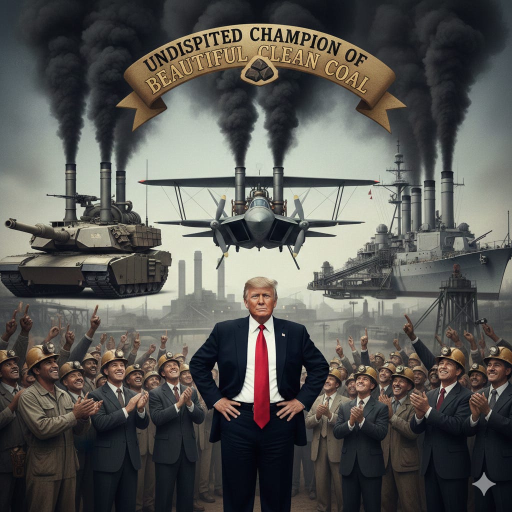Instead, Trump directed the US military Wednesday to invest in coal, a previously declining industry worth about 1/5th of the green economy, globally. Coal joins horse and buggy manufacturer Burr & Company alongside Blockbuster, Kodak, Pets.com, Lehman Brothers, and the Edsel in the War Department’s well-diversified portfolio.